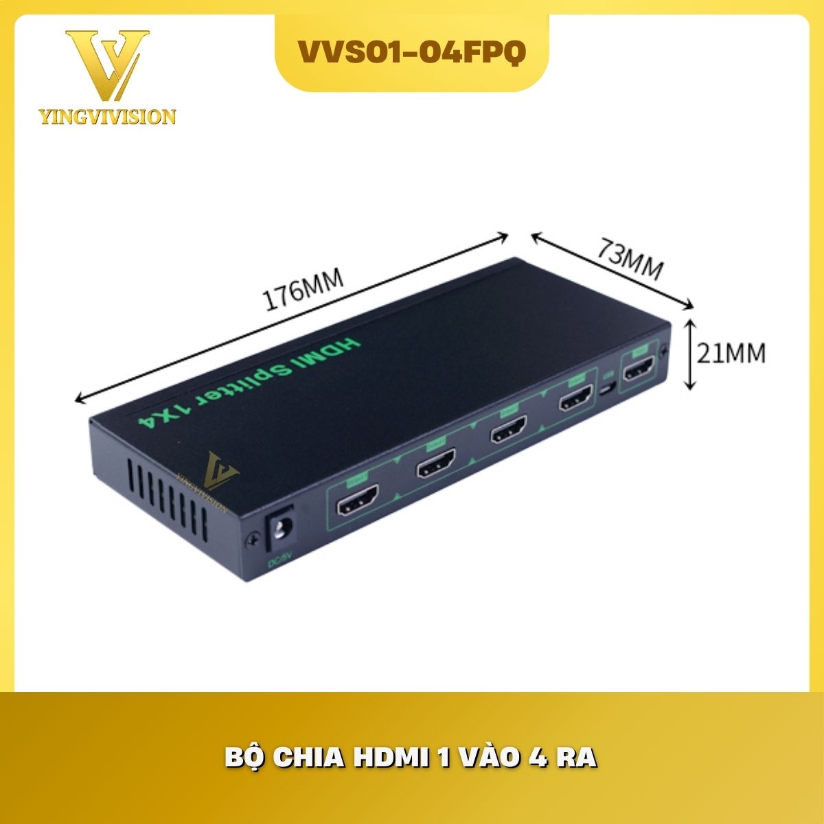 Bộ chia HDMI 1 ra 4 VVS01-04FPQ chuyên dụng từ VIVISION là thiết bị phân tách tín hiệu hình ảnh và âm thanh độ nét cao từ một nguồn duy nhất ra 4 màn hình cùng lúc mà không làm giảm chất lượng. Được nâng cấp mạnh mẽ với khả năng hỗ trợ độ phân giải 4K (3840 x 2160 @30Hz) và chip băng thông cao 3.0G, VVS01-04FPQ là giải pháp lý tưởng cho các hệ thống hiển thị quảng cáo, phòng họp đa phương tiện và trung tâm điều hành.