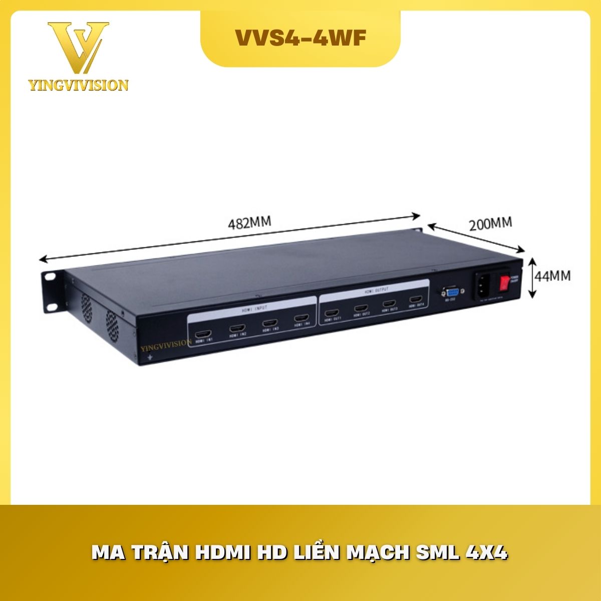 Bộ ma trận chuyển mạch liền mạch 4×4 của VIVISION (VVS4-4WF) là thiết bị xử lý tín hiệu video hiệu suất cao, cho phép kết nối tối đa 4 nguồn cấp dữ liệu đầu vào và xuất ra 4 màn hình hiển thị độc lập. Điểm khác biệt cốt lõi nằm ở cụm từ “liền mạch” (Seamless Switching) – công nghệ cho phép chuyển đổi giữa các nguồn tín hiệu tức thì mà không gây ra hiện tượng giật hình, nhiễu hay màn hình đen.