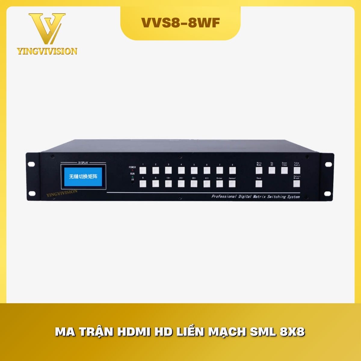 Bộ ma trận chuyển mạch liền mạch 8×8 là thiết bị chuyển mạch video hiệu suất cao, hỗ trợ tối đa 8 đầu vào và 8 đầu ra tín hiệu. Đây được coi là giải pháp trung cấp hoàn hảo cho hệ thống AV chuyên nghiệp, lấp đầy khoảng trống giữa các bộ chia nhỏ lẻ và các hệ thống dự án khổng lồ. Thiết bị sử dụng kiến trúc phần cứng mảng quy mô lớn, giúp hệ thống vận hành bền bỉ mà không cần đến hệ điều hành máy tính, tránh tuyệt đối nguy cơ nhiễm virus hay treo sơ đồ điều khiển.