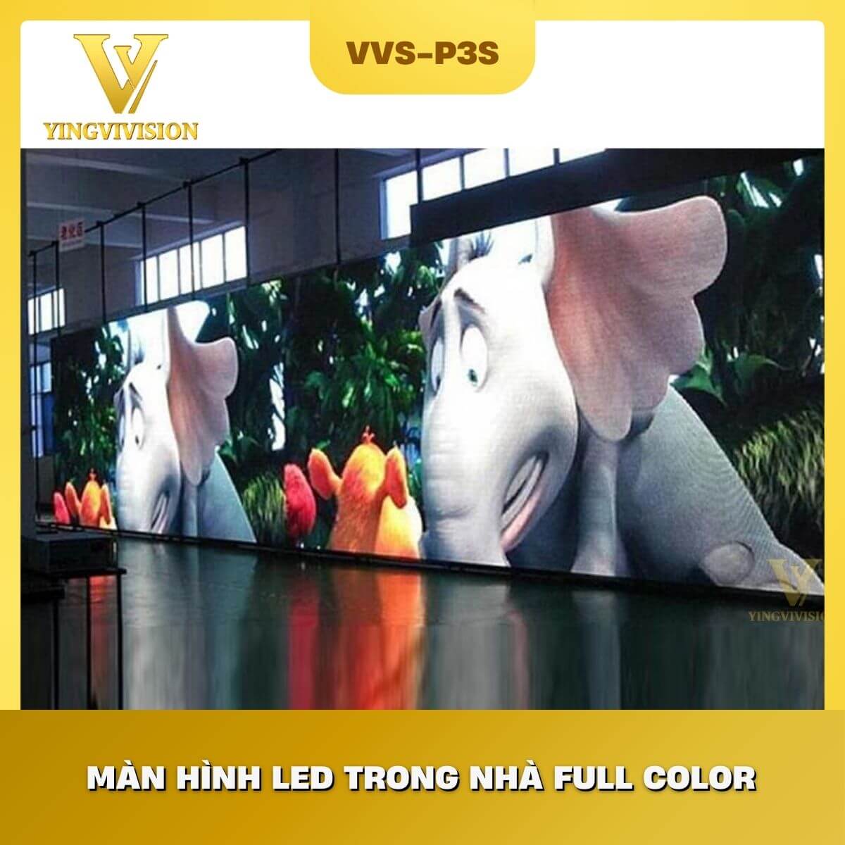 - Độ phân giải màn hình LED P3: rất cao, dễ dàng đạt chuẩn Full HD hoặc 4K khi lắp đặt diện tích lớn.