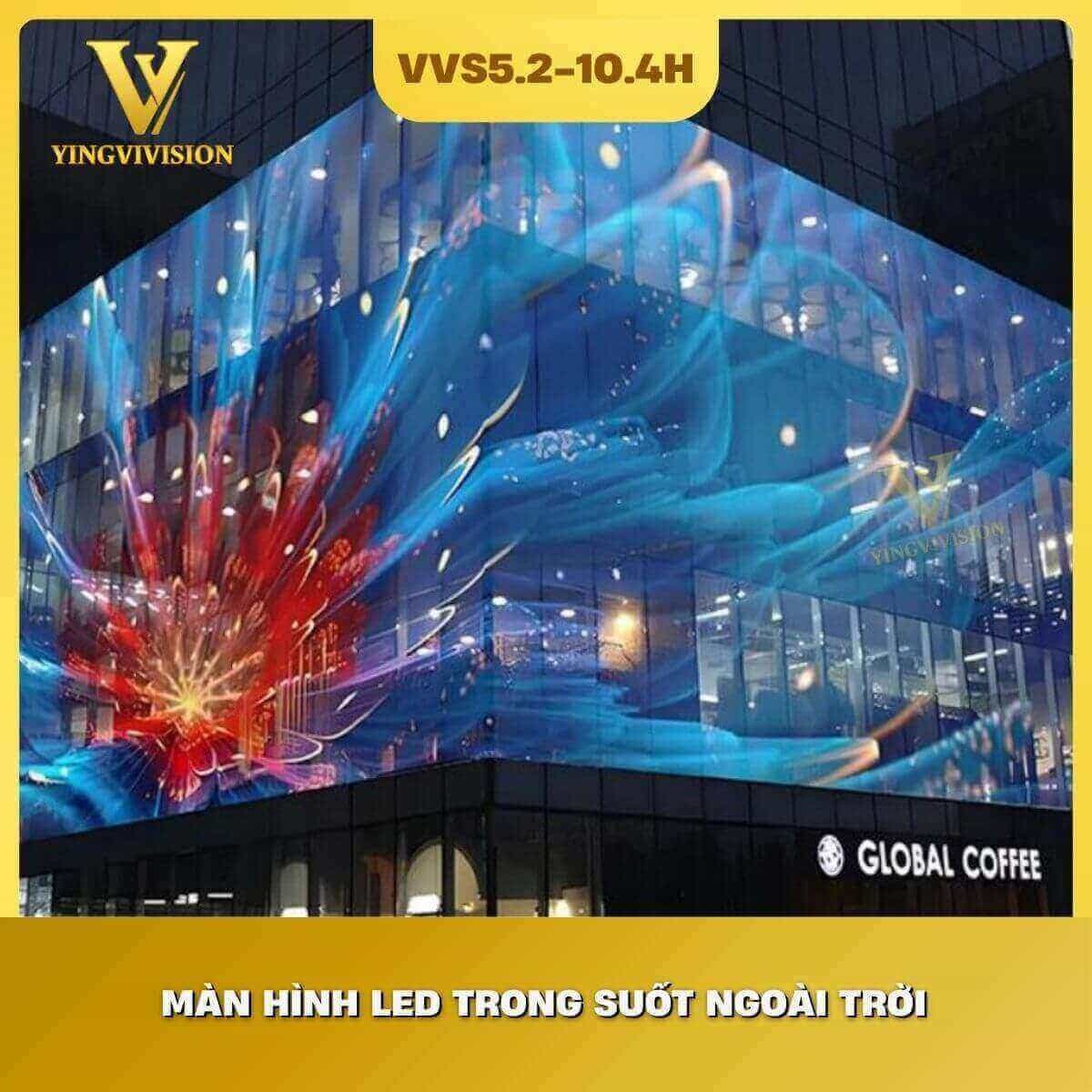 Màn hình LED trong suốt ngoài trời P5.2-10.4 là giải pháp quảng cáo hiện đại dành cho các công trình kiến trúc sử dụng mặt dựng kính. Sản phẩm mang lại sự cân bằng giữa hiệu quả hiển thị, chi phí đầu tư và tính thẩm mỹ công trình.