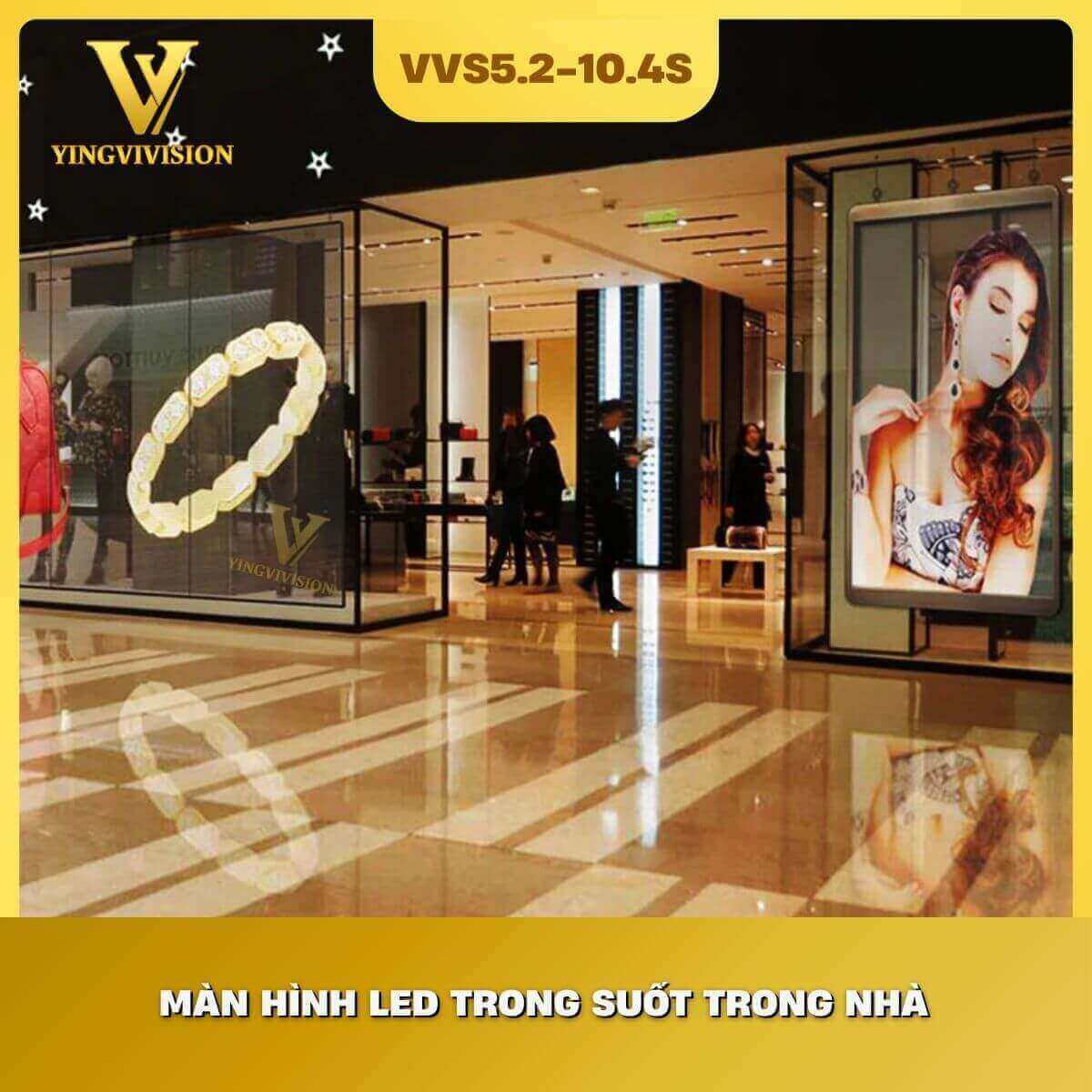 Màn hình LED trong suốt trong nhà P5.2-10.4 phù hợp với các khu vực có khoảng cách quan sát từ 5 mét trở lên.
