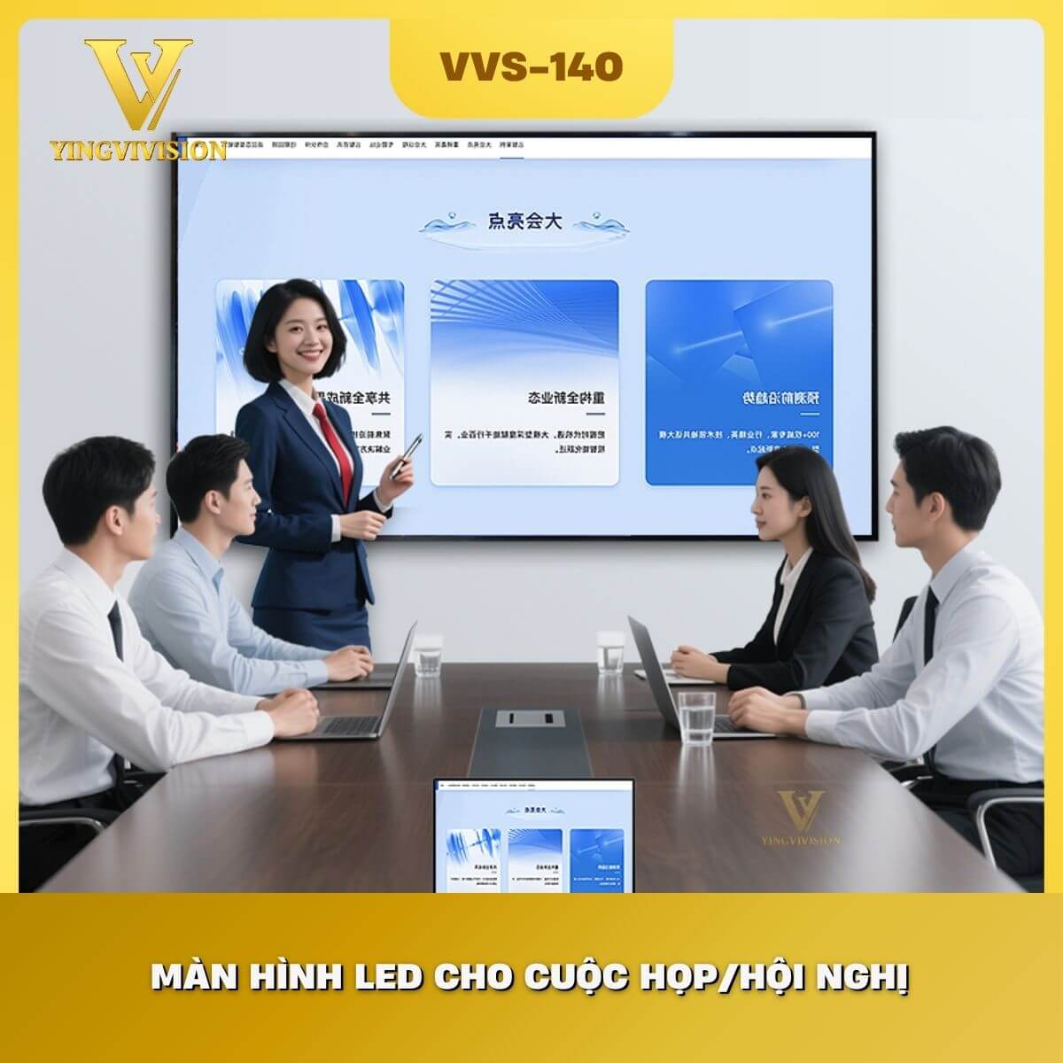 Ngược lại với dòng 160 hay 175 inch đòi hỏi hội trường rộng lớn và trần nhà cao, màn hình LED phòng họp 140 inch vừa vặn một cách kỳ lạ trong các phòng họp tiêu chuẩn của tập đoàn. Nó không tạo ra cảm giác “choáng ngợp” gây mỏi mắt cho người ngồi gần, đồng thời vẫn đảm bảo tính thẩm mỹ, đồng bộ với hệ thống nội thất gỗ hoặc kính hiện đại.